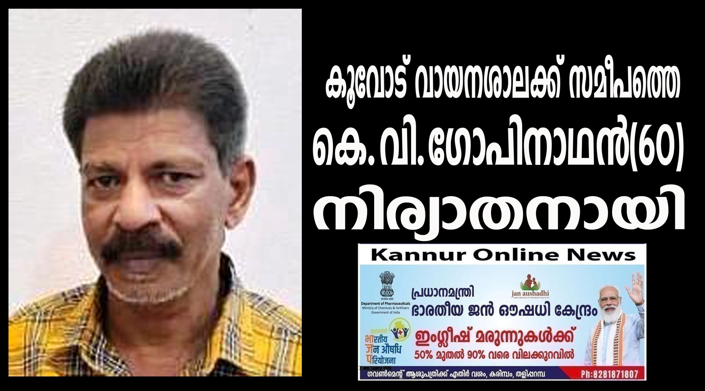 തളിപ്പറമ്പ്: കൂവോട് വായനശാലക്ക് സമീപത്തെ കെ.വി.ഗോപിനാഥന്(60)നിര്യാതനായി.
