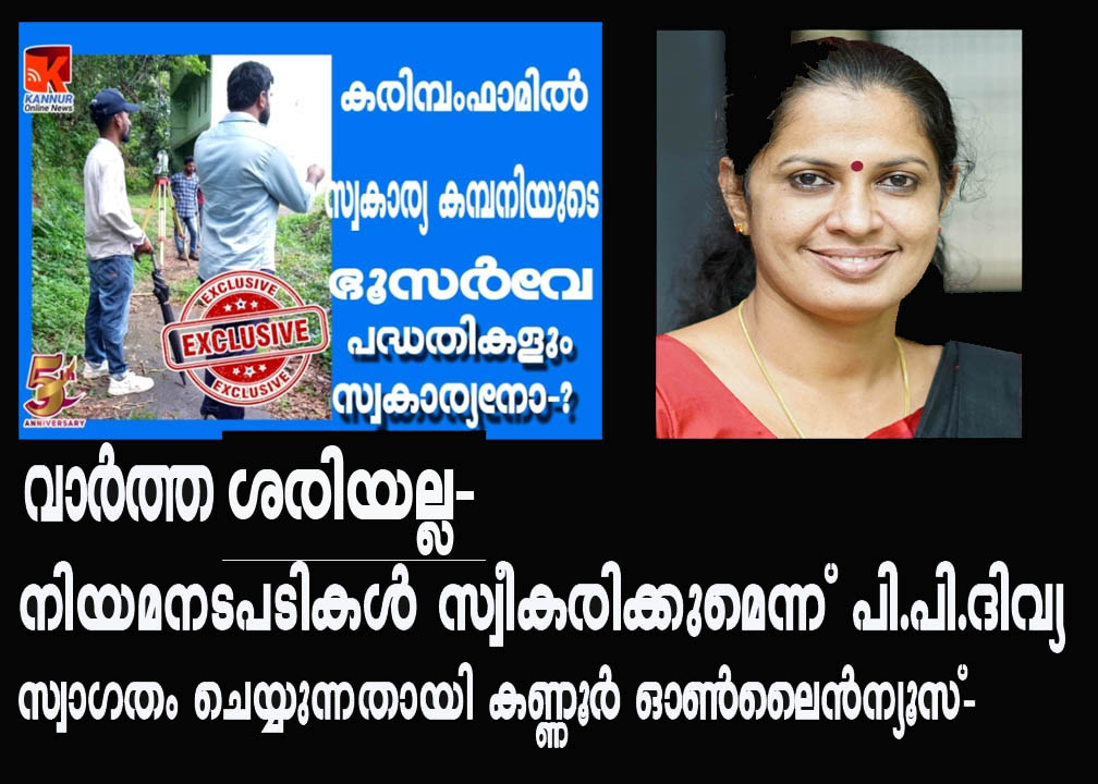നിയമനടപടികള് സ്വീകരിക്കും-പി.പി.ദിവ്യ-സ്വാഗതം ചെയ്യുന്നതായി കണ്ണൂര് ഓണ്ലൈന്ന്യൂസ്.