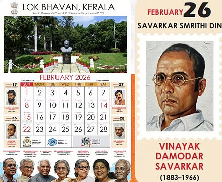 ലോക്ഭവന്‍ പുറത്തിറക്കിയ കലണ്ടറില്‍ പ്രമുഖ വ്യക്തികളുടെ കൂട്ടത്തില്‍ ഹിന്ദുമഹാസഭ നേതാവ് വി.ഡി.സവര്‍ക്കറുടെ ചിത്രവും.