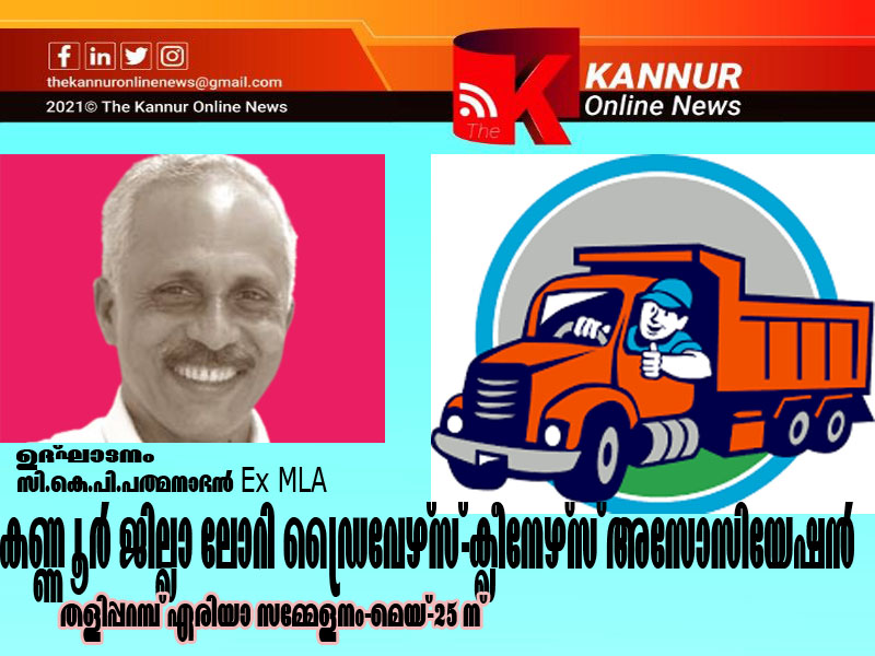 തളിപ്പറമ്പ്: കണ്ണൂര് ജില്ലാ ലോറി ഡ്രൈവേഴ്സ്-ക്ലീനേഴ്സ് അസോസിയേഷന് തളിപ്പറമ്പ് ഏരിയാ കണ്വെന്ഷന് മെയ് 25 ന്