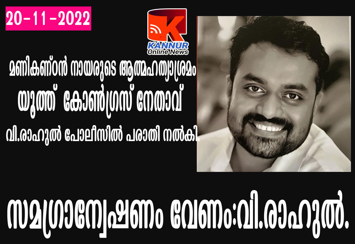 മണികണ്ഠന് നായരുടെ ആത്മഹത്യാശ്രമം യൂത്ത് കോണ്ഗ്രസ് നേതാവ് വി.രാഹുല് പോലീസില് പരാതി നല്കി.