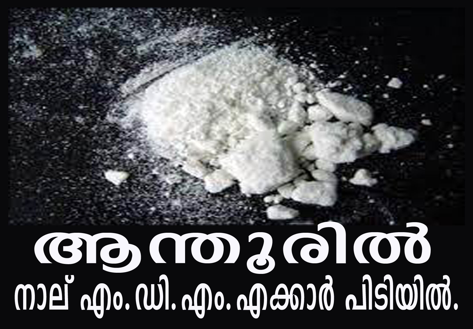 ആന്തൂര് നഗരസഭാ പ്രദേശത്ത് നാലു യുവാക്കള്ക്കെതിരെ എം.ഡി.എം.എ ഉപയോഗിച്ചതിന് തളിപ്പറമ്പ് പോലീസ് കേസെടുത്തു.