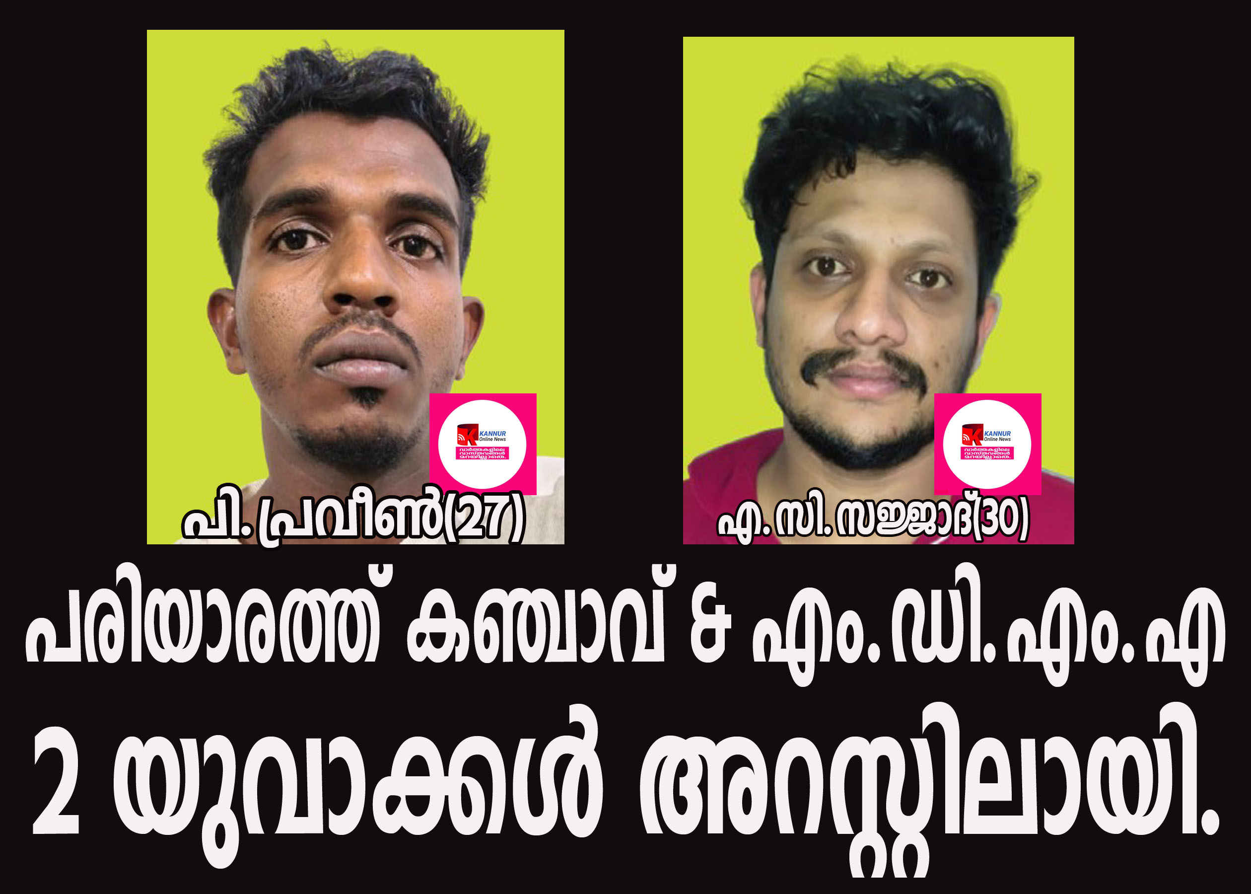 വാർത്തകൾ പരിയാരത്ത് പോലീസും ഡാന്സാഫ് ടീമും ചേര്ന്ന് കഞ്ചാവും എം.ഡി.എം.എയുംപിടികൂടി. രണ്ടുപേര് അറസ്റ്റില്. Kannur News January 23, 2026 പരിയാരം: പരിയാരത്ത് പോലീസും ഡാന്സാഫ് ടീമും ചേര്ന്ന് കഞ്ചാവും എം.ഡി.എം.എയുംപിടികൂടി. രണ്ടുപേര് അറസ്റ്റില്. പരിയാരം പോലീസ് സ്റ്റേഷന് പരിധിയില് ഗവ.ആയുര്വേദകോളേജിന് സമീപം വെച്ച് ഇന്നലെ രാത്രി 1.10 ന് ഇന്സ്പെക്ടര് കെ.ജെ.വിനോയിയും ഡന്സാഫ് ടീമും ചേര്ന്നാണ് 4.660 ഗ്രാം എം.ഡി.എം.എയും 15.930 ഗ്രാം കഞ്ചാവുമായി രണ്ടു യുവാക്കളെ പിടികൂടിയത്. കോരന്പീടിക അങ്ങേത്ത്ചാലില് വീട്ടില് എ.സി.സജ്ജാദ്(30), കാസര്ഗോഡ് അമ്പലത്തറ നായിക്കുട്ടിപ്പാറയിലെ കളരിക്കല് വീട്ടില് പി.പ്രവീണ്(27) എന്നിവരാണ് പിടിയിലായത്. സജ്ജാദ് നിരവധി കേസുകളില് പ്രതിയാണ്. എ.എസ്.ഐ പ്രകാശന്, സീനിയര് സി.പി.ഒമാരായ രതീഷ്, രാജേഷ്, ഡ്രൈവര് സി.പി.ഒ രതീഷ്കുമാര്, ഡാന്സാഫ് ടീമം അംഗങ്ങളായ ബിനേഷ്, സജിത്ത്, ശ്രീജിത്ത്, നിശാന്ത് എന്നിവരും പ്രതികളെ പിടികൂടിയ സംഘത്തില് ഉണ്ടായിരുന്നു.