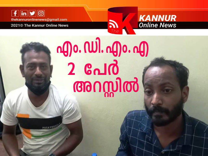 ഉരുവച്ചാല് സ്വദേശികളായ പി.പി.ക്വാര്ട്ടേഴ്സില് അജിനാസ്(31), മിന്നാടന് ഹൗസില് കെ.നിഖില്(30) എന്നിവരെയാണ് തളിപ്പറമ്പ് പ്രിന്സിപ്പല് എസ്.ഐ.പി.സി.സഞജയ്കുമാര് അറസ്റ്റ് ചെയ്തത്.