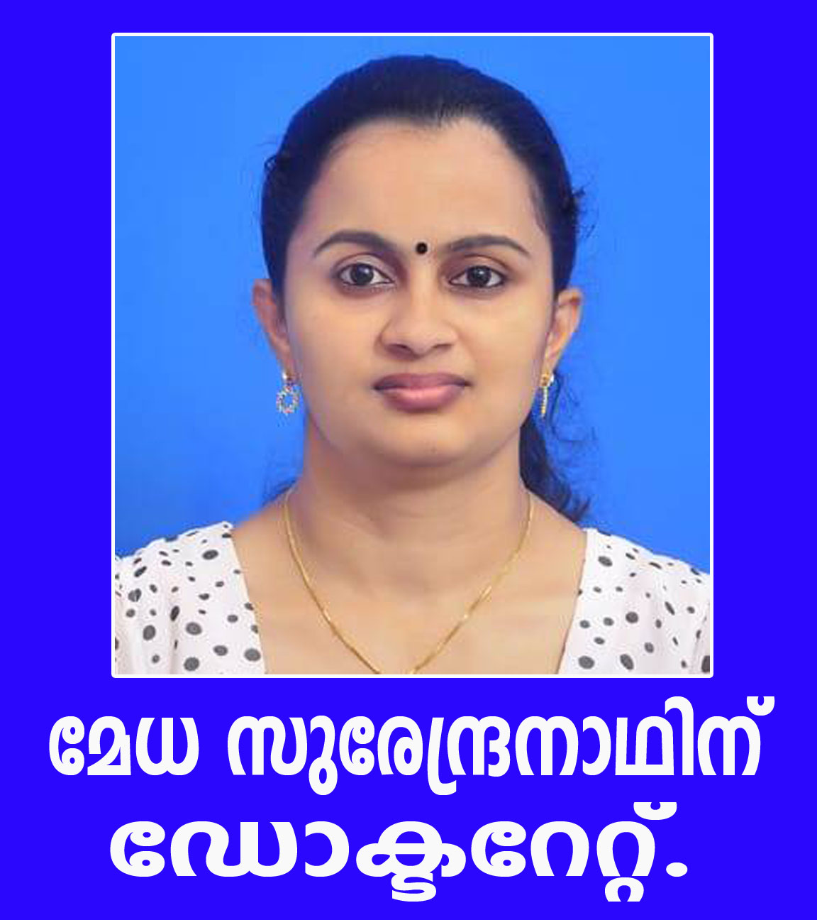 തിരുവനന്തപുരം: മേധ സുരേന്ദ്രനാഥിന് ഡോക്ടറേറ്റ്.
