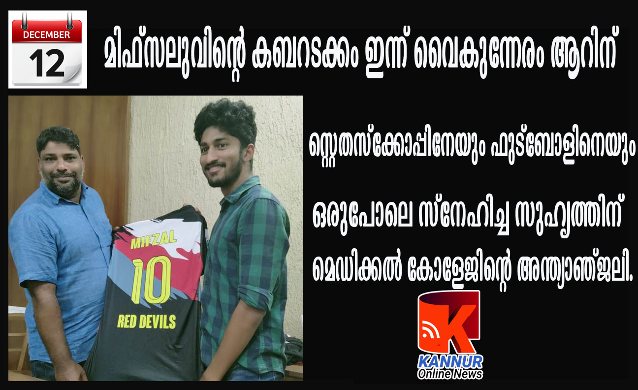 മിഫ്സലുവിന്റെ കബറടക്കം ഇന്ന് വൈകുന്നേരം ആറിന് സ്റ്റെതസ്ക്കോപ്പിനേയും ഫുട്ബോളിനെയും ഒരുപോലെ സ്നേഹിച്ച സുഹൃത്തിന് മെഡിക്കല് കോളേജിന്റെ അന്ത്യാഞ്ജലി.