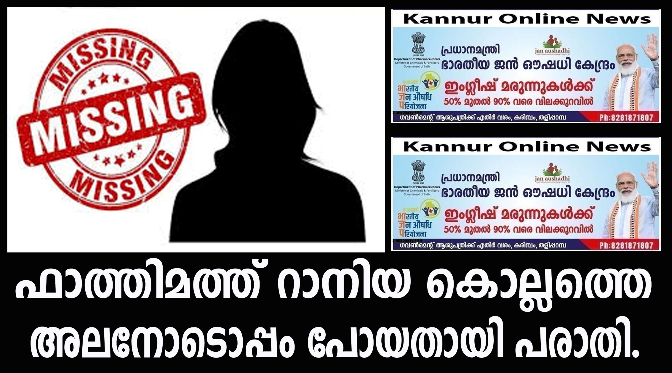 പട്ടുവം ഇടമുട്ടിലെ പരിയാരത്ത് വീട്ടില് കെ.കെ.റാഷിദിന്റെ മകള് പി.ഫാത്തിമത്ത് റാനിയയെയാണ് ഫിബ്രവരി 18 ന് വൈകുന്നേരം മൂന്ന് മണി മുതല് കാണാതായത്.