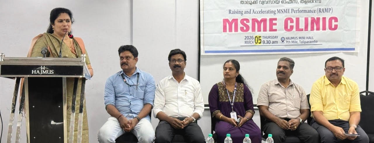 തളിപ്പറമ്പ്: ജില്ല വ്യവസായ കേന്ദ്രത്തിന്റെയും തളിപ്പറമ്പ് താലൂക്ക് വ്യവസായ ഓഫീസിന്റെയും സംയുക്താഭിമുഖ്യത്തില് എം. എസ്.എം.ഇ ക്ലിനിക്ക് സംഘടിപ്പിച്ചു.