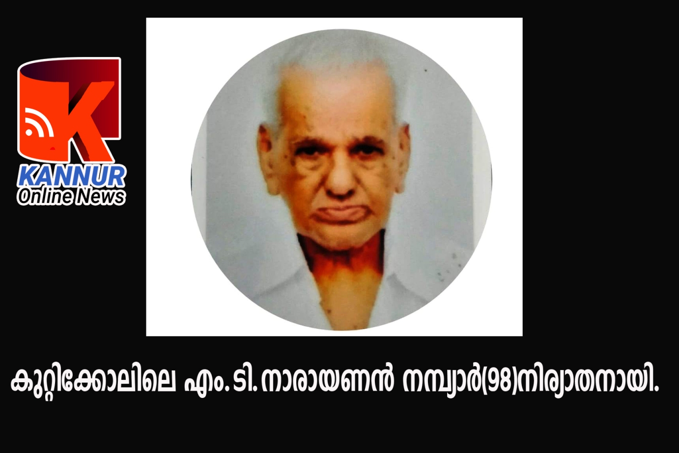 കുറ്റിക്കോലിലെ എം.ടി.നാരായണന് നമ്പ്യാര്(98)നിര്യാതനായി.