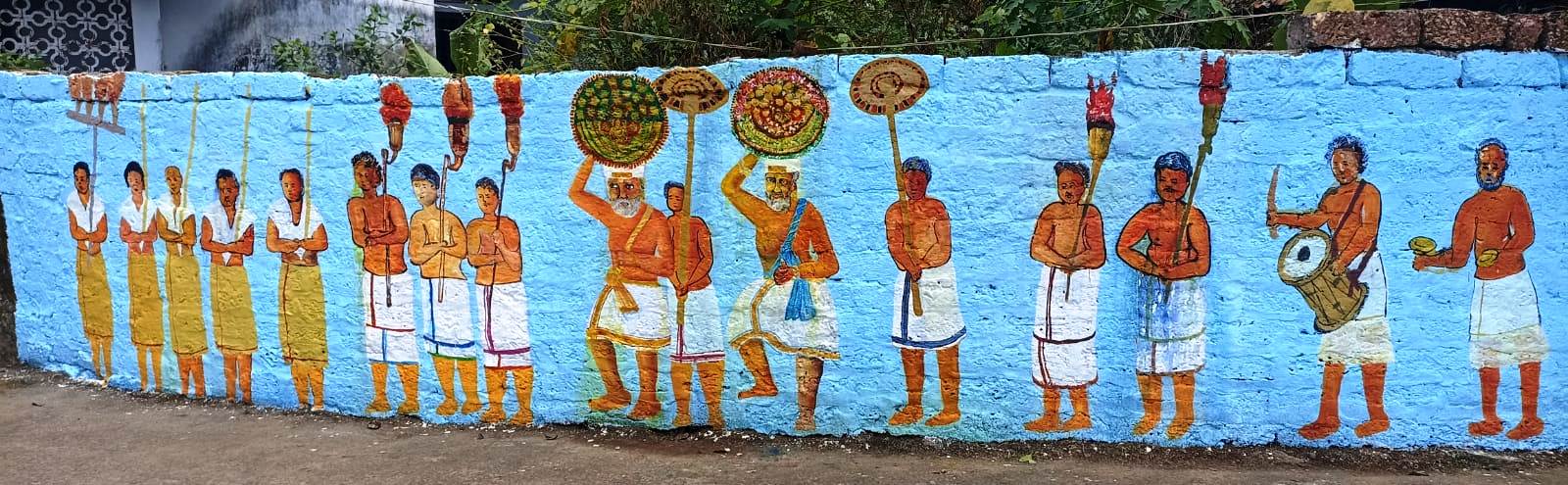 ഉമേഷ്, രതീഷ്, രാംകുമാര് എന്നിവര് ചേര്ന്നാണ് ക്ഷേത്രോല്സവം ചുമര്ചിത്രത്തില് ആവിഷ്ക്കരിച്ചത്.