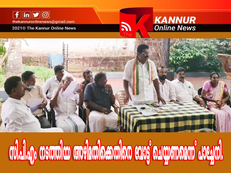 പഞ്ചായത്തംഗത്തെ മുന്നില് നിര്ത്തി സി.പി.എം നടത്തിയ അഴിമതിക്കെതിരെ വോട്ട് ചെയ്യണമെന്ന് പാച്ചേനി.
