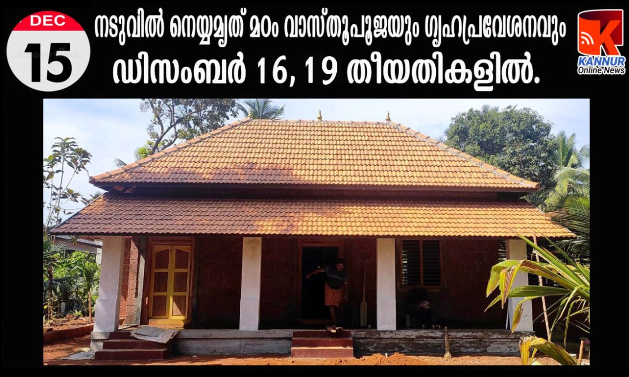 നടുവില്‍ നെയ്യമൃത് മഠം വാസ്തൂപൂജയും ഗൃഹപ്രവേശനവും ഡിസംബര്‍ 16, 19 തീയതികളില്‍.