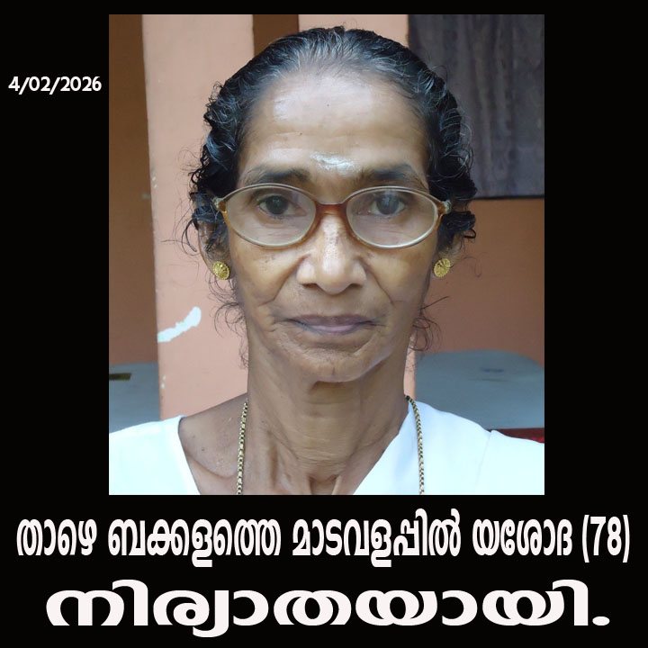 താഴെ ബക്കളത്തെ മാടവളപ്പില്‍ യശോദ (78) നിര്യാതയായി.