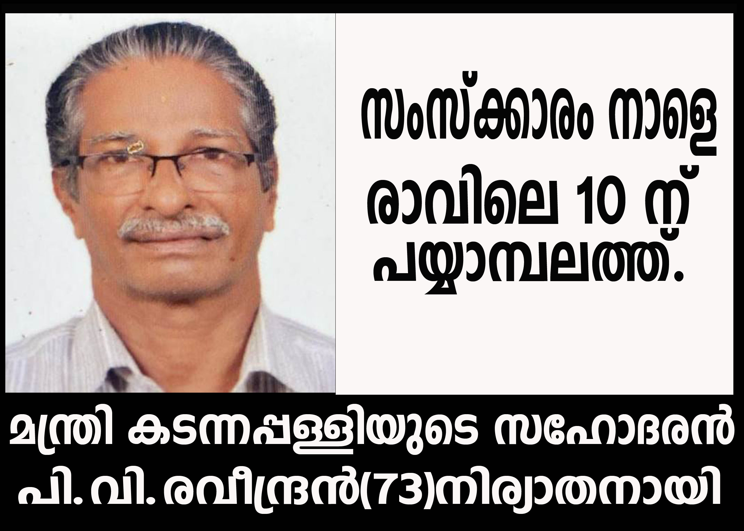 മന്ത്രി കടന്നപ്പള്ളി രാമചന്ദ്രന്റെ അനുജന് പി.വി രവീന്ദ്രന് നിര്യാതനായി