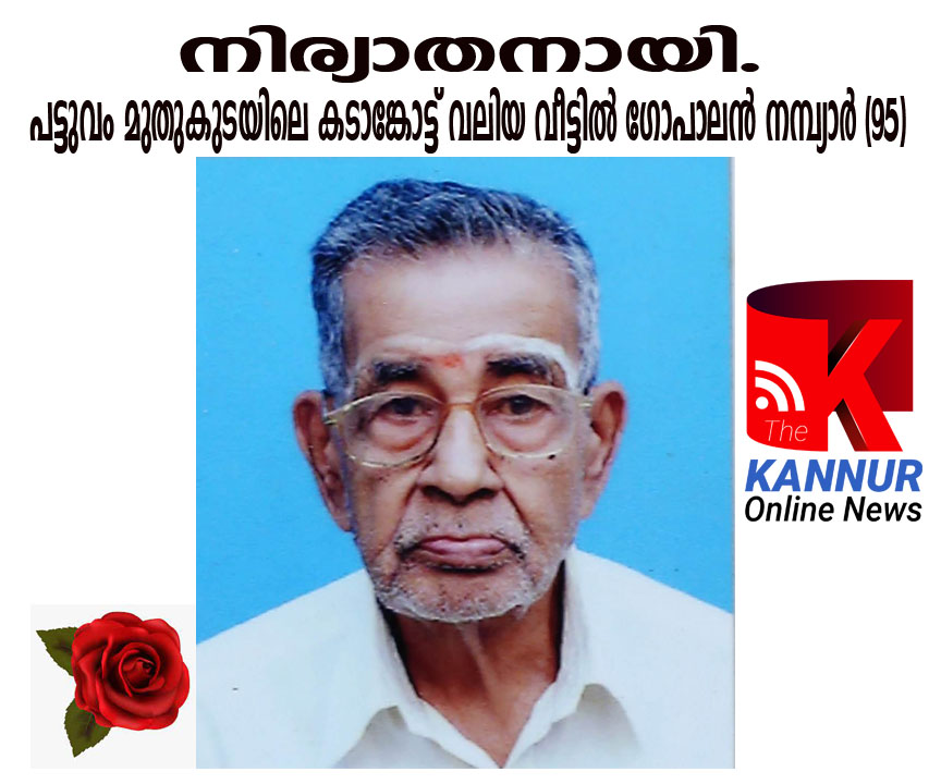 പട്ടുവം മുതുകുടയിലെ കടാങ്കോട്ട് വലിയ വീട്ടില് ഗോപാലന് നമ്പ്യാര് (95) നിര്യാതനായി.
