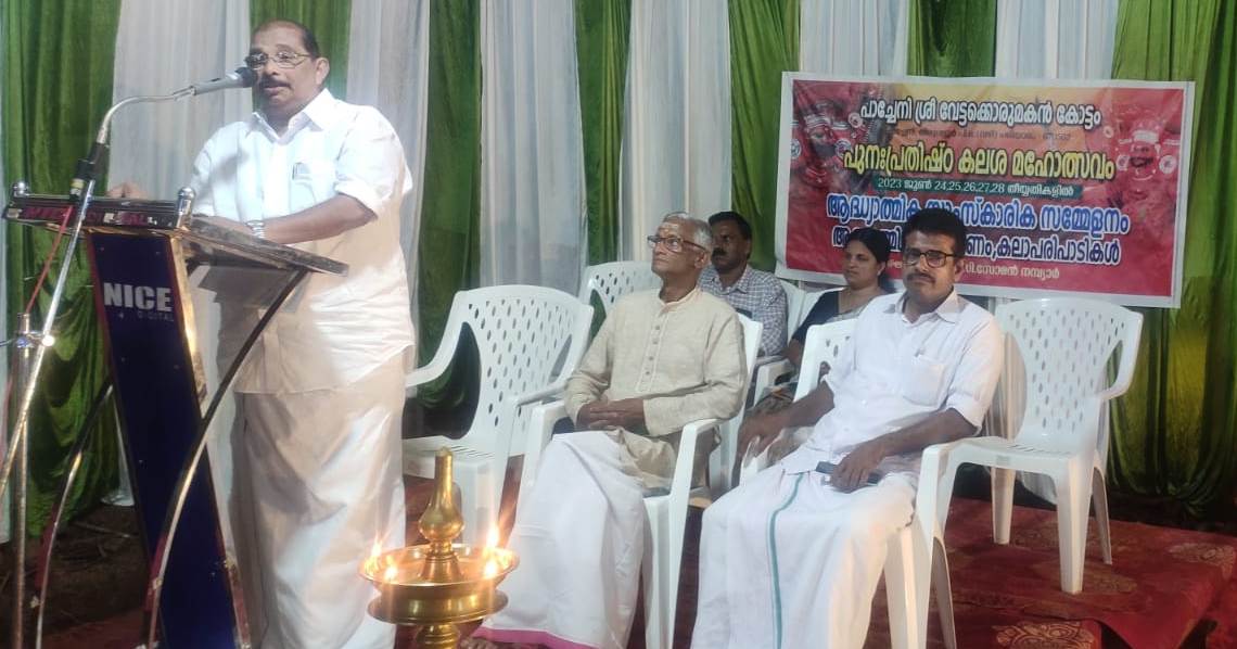 പരിയാരം: പാച്ചേനി ശ്രീ വേട്ടക്കൊരുമകന് കോട്ടം പുന:പ്രതിഷ്ഠ കലശത്തിന്റെ ഭാഗമായുള്ള ആദ്ധ്യാത്മിക-സാംസ്കാരിക സമ്മേളനം കേരള സംസ്ഥാന മുന്നോക്ക കോര്പ്പറേഷന് ഡയറക്ടര് കെ.സി.സോമന് നമ്പ്യാര് ഉദ്ഘാടനം ചെയ്തു.
