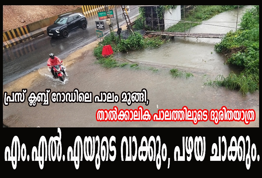 പ്രസ് ക്ലബ്ബ് റോഡിലെ പാലം മുങ്ങി, താല്ക്കാലിക പാലത്തിലൂടെ ദുരിതയാത്ര