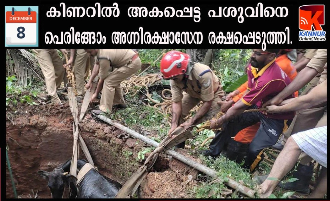 കിണറില് അകപ്പെട്ട പശുവിന് പെരിങ്ങോം അഗ്നിശമനസേന രക്ഷകരായി.