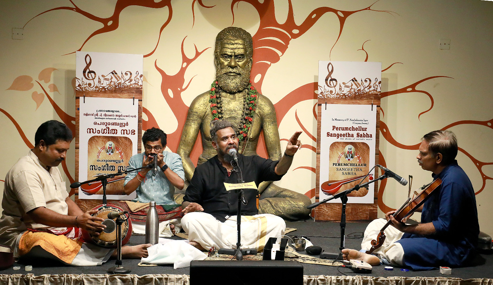 കളരിയും തെയ്യവും കഥകളിയും പൂരക്കളിയുമെല്ലാം കണ്ടും കേട്ടും തൊട്ടും അറിഞ്ഞ കെ.കുഞ്ഞിക്കണ്ണന്‍ നായരുടെ മൂന്നാം ചരമ വാര്‍ഷികത്തില്‍ അദ്ദേഹത്തിന്റെ ഭാര്യ ടി.വി.വിമലയും കുടുംബങ്ങളുടെയും സാന്നിധ്യത്തില്‍ ലോക പ്രശസ്ത യുവ സംഗീതജ്ഞന്‍ ഹരീഷ് ശിവരാമകൃഷ്ണന്റെ കച്ചേരിയാണ് പെരുഞ്ചെലൂര്‍ സംഗീത സഭയില്‍ അരങ്ങേറിയത്.
