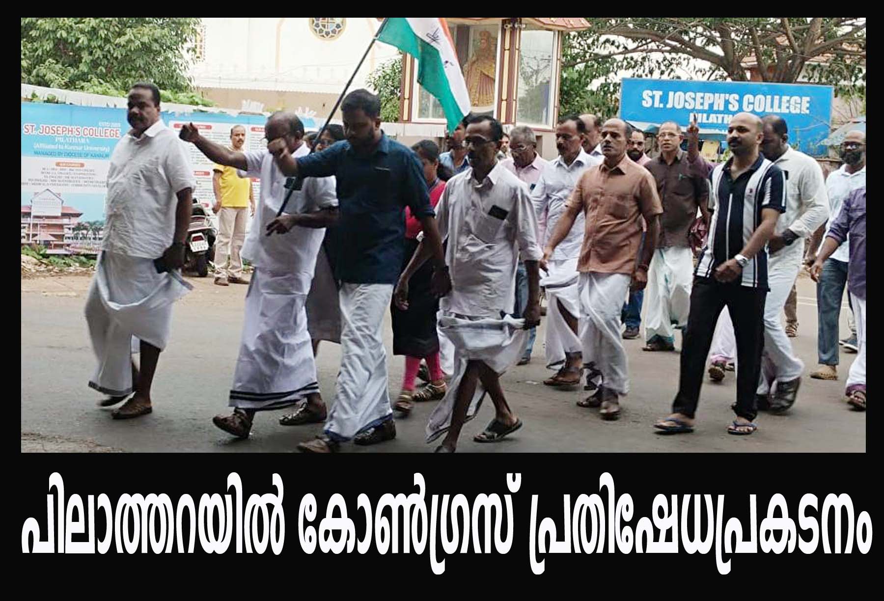 പിലാത്തറയില് കോണ്ഗ്രസ് പ്രതിഷേധപ്രകടനം-പതാകകള് പുന:സ്ഥാപിച്ചു.