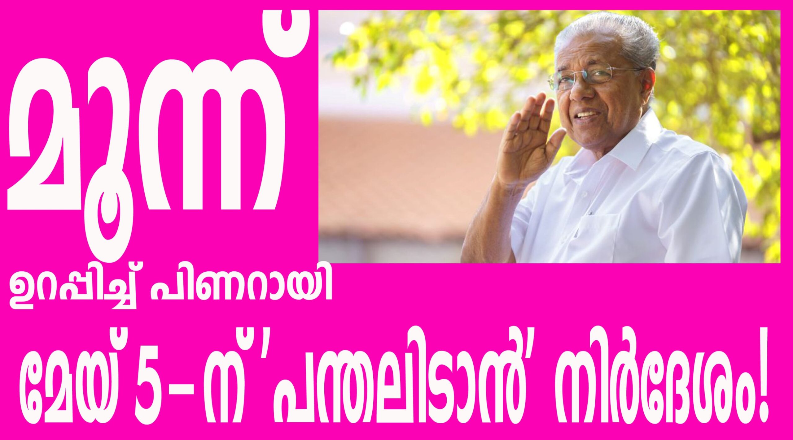 തിരുവനന്തപുരം: എല്.ഡി.എഫ് മൂന്നാംഭരണം ഉറപ്പിച്ചതായി സൂചന, പ്രമുഖ മാധ്യമപ്രവര്ത്തകനും മംഗളം ദിനപത്രം പ്രത്യേക ലേഖകനുമായ എസ്.നാരായണന് ഇന്ന് മംഗളത്തില് പ്രസിദ്ധീകരിച്ച റിപ്പോര്ട്ടില് മെയ്-5 ന് സത്യപ്രതിജ്ഞക്ക് പന്തലിടാന് മുഖ്യമന്ത്രി നിര്ദ്ദേശം നല്കിയതായി പറയുന്നു.