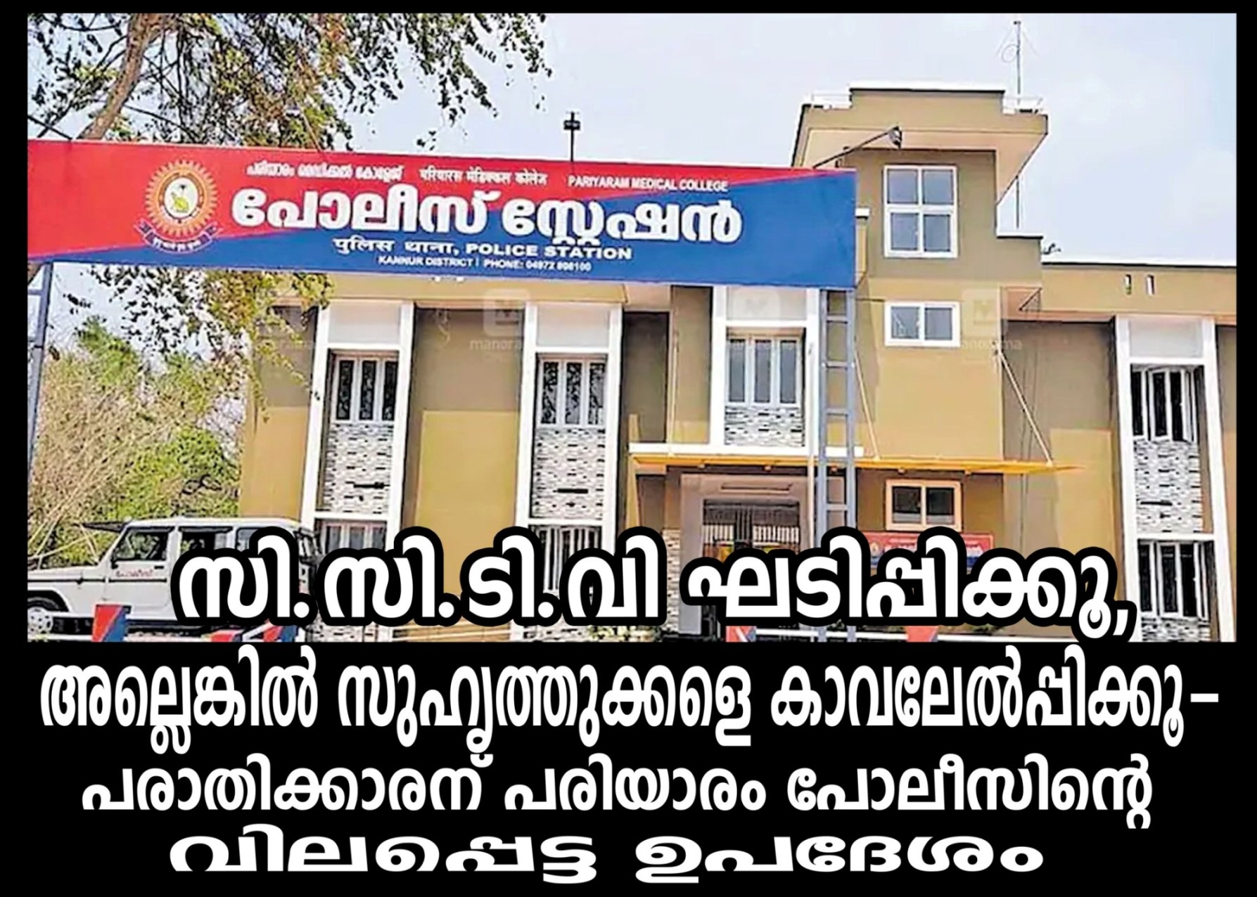 പരിയാരം: നിങ്ങള് വീട്ടില് സി.സി.ടി.വി ഘടിപ്പിക്കൂ, അതല്ലെങ്കില് സുഹൃത്തുക്കളായ രണ്ടോ മൂന്നോ പേരെ കാവല് ഏല്പ്പിക്കൂ-പോലീസിന് പരിമിതികളുണ്ട്.