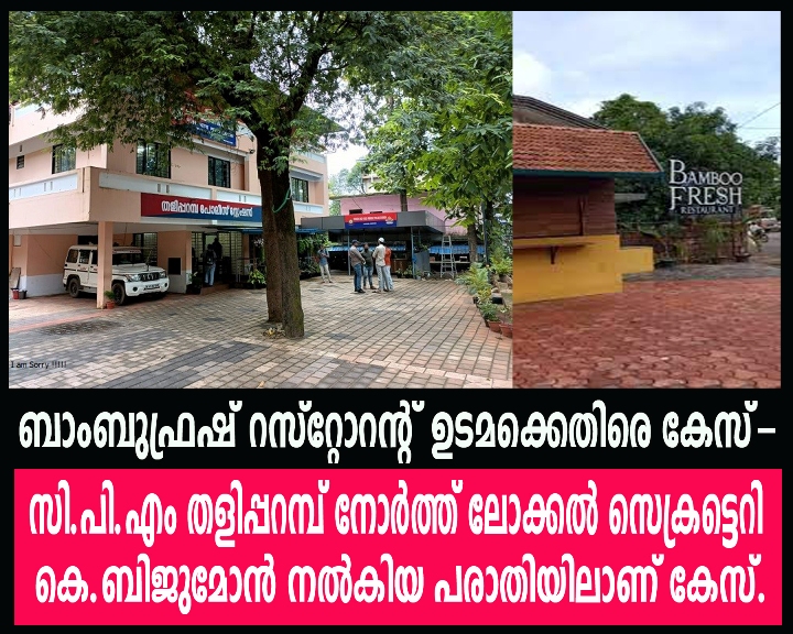 തളിപ്പറമ്പ്: ബാംബുഫ്രഷ് റസ്റ്റോറന്റ് ഉടമക്കെതിരെ പോലീസ് കേസെടുത്തു.