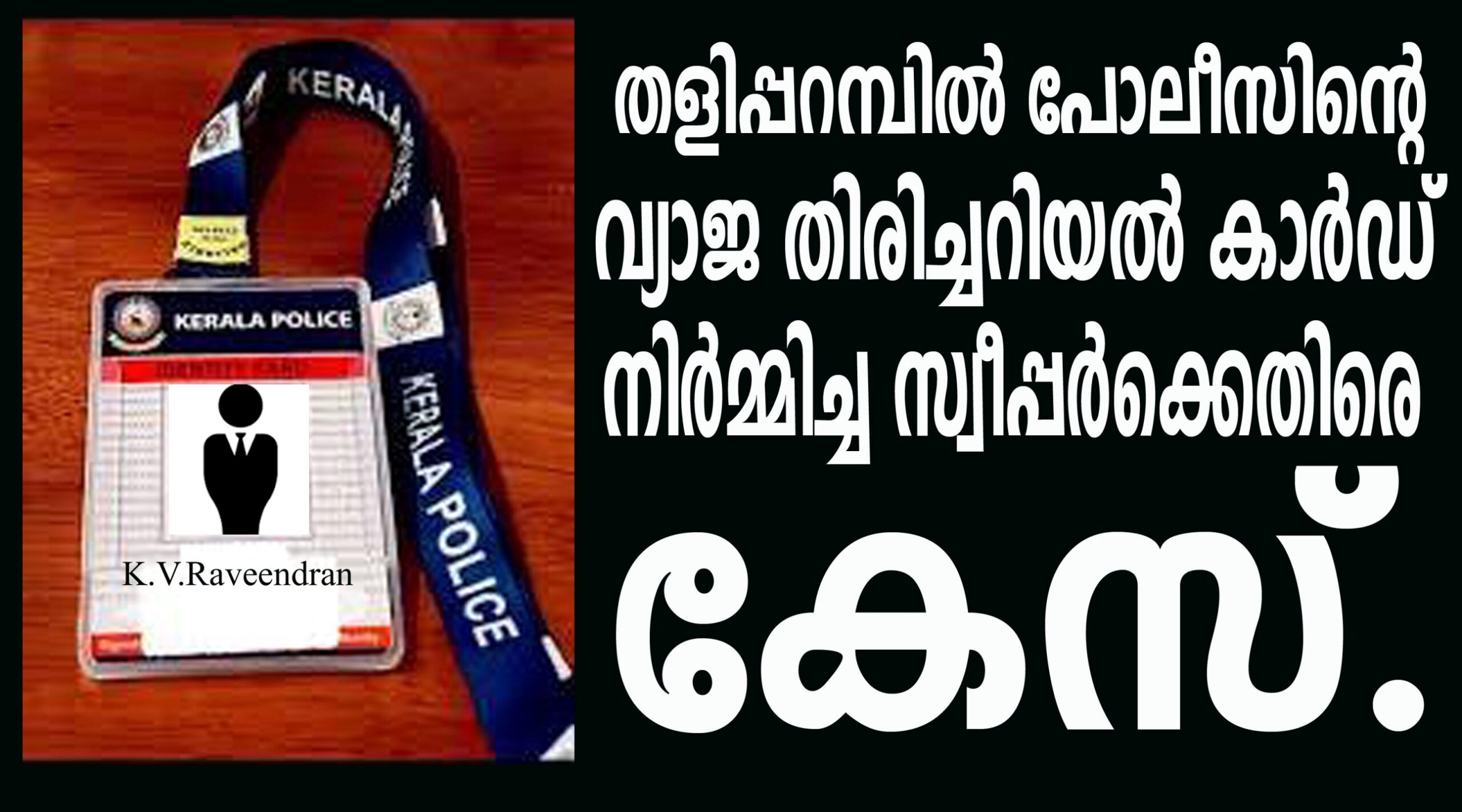 തളിപ്പറമ്പ്: വ്യാജ പോലീസ് തിരിച്ചറിയല് കാര്ഡ് നിര്മ്മിച്ച സംഭവത്തില് പോലീസ് ഹെഡ്ക്വാര്ട്ടേഴ്സ് ഓഫീസിലെ താല്ക്കാലിക സ്വീപ്പറുടെ പേരില് പോലീസ് കേസെടുത്തു.