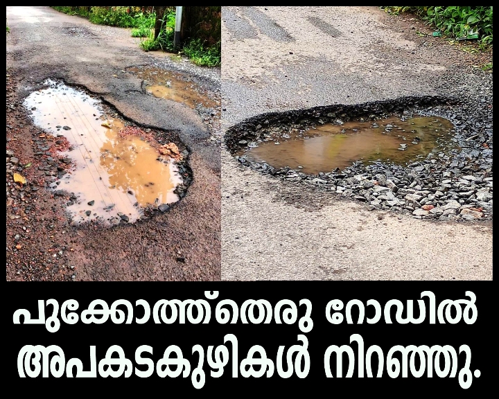 പുക്കോത്ത്തെരു റോഡില് അപകടകുഴികള് നിറഞ്ഞു.