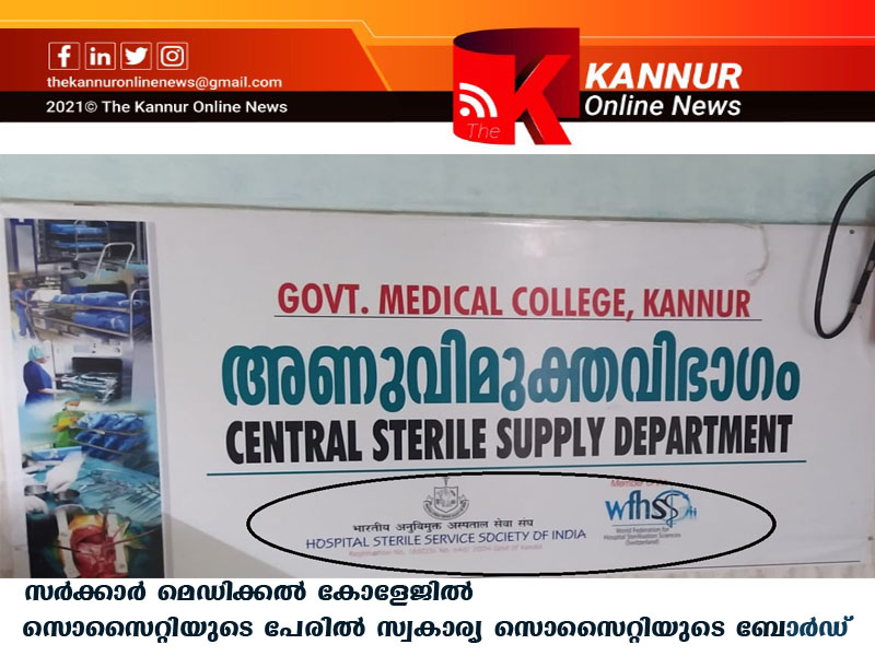പരിയാരം: സര്ക്കാര് സ്ഥാപനമായ കണ്ണൂര് ഗവ.മെഡിക്കല് കോളേജില് ഒരു സൊസൈറ്റിയുടെ പേരില് ബോര്ഡ് സ്ഥാപിച്ചതിനെതിരെ പരാതി.