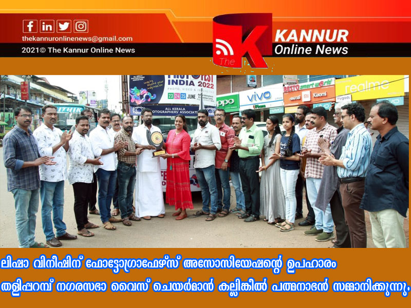 ലിഷ വിനീഷിന് ആള് കേരള ഫോട്ടോഗ്രാഫേഴ്സ് അസോസിയേഷന് കണ്ണൂര് ജില്ല കമ്മിറ്റിയുടെ നേതൃത്വത്തില് അനുമോദനം നല്കി.
