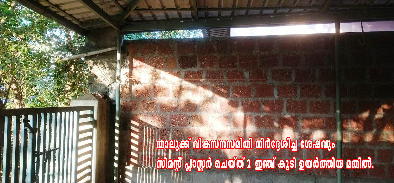 ഇതില് സുരക്ഷാഭീഷണി കാണാത്ത ബ്ലോക്ക് പഞ്ചായത്താണ് തകര്ന്ന് അപകടാവസ്ഥയിലായ മതില് പുനര് നിര്മ്മിക്കാനായി പരാതി നല്കിയ വിരോധത്തിന് കാറ്റും വെളിച്ചവും നിഷേധിച്ച് പൊളിച്ചുമാറ്റിയ മതിലിനേക്കാള് ഉയരത്തില് പ്രതികാര മതില് പണിതത്.