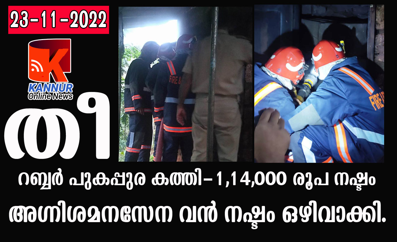പെരിങ്ങോം-വയക്കര ഗ്രാമ പഞ്ചായത്തില് മുണ്ടറങ്കാനത്തെ ഷിബു ഇലവുങ്കല് എന്നയാളുടെ റബ്ബര് പുകപ്പുരക്കാണ് തീ പിടിച്ചത്.