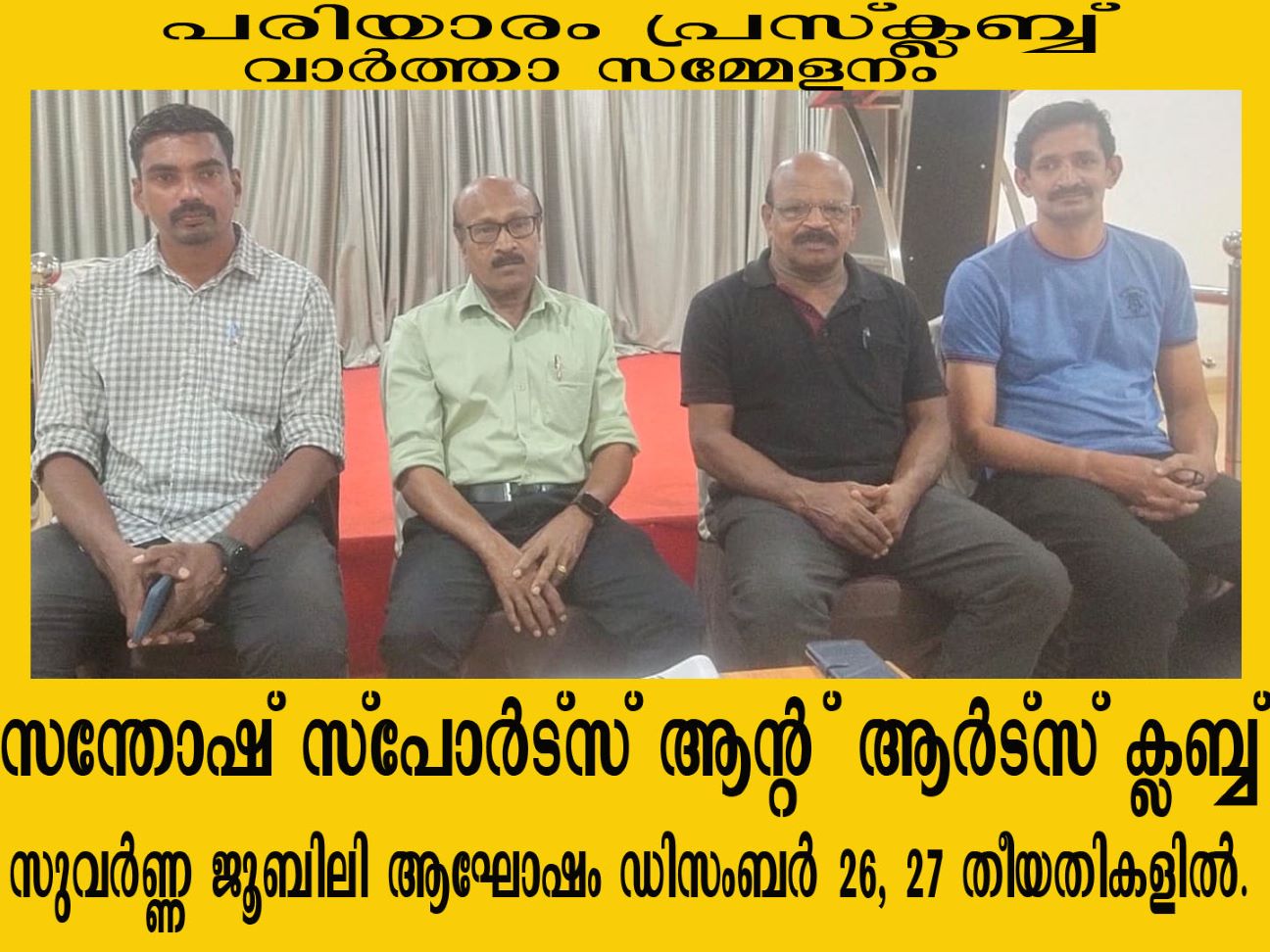 സന്തോഷ് സ്പോര്ട്സ് ആന്റ് ആര്ട്സ് ക്ലബ്ബ് സുവര്ണ്ണ ജൂബിലി ആഘോഷം ഡിസംബര് 26, 27 തീയതികളില്.