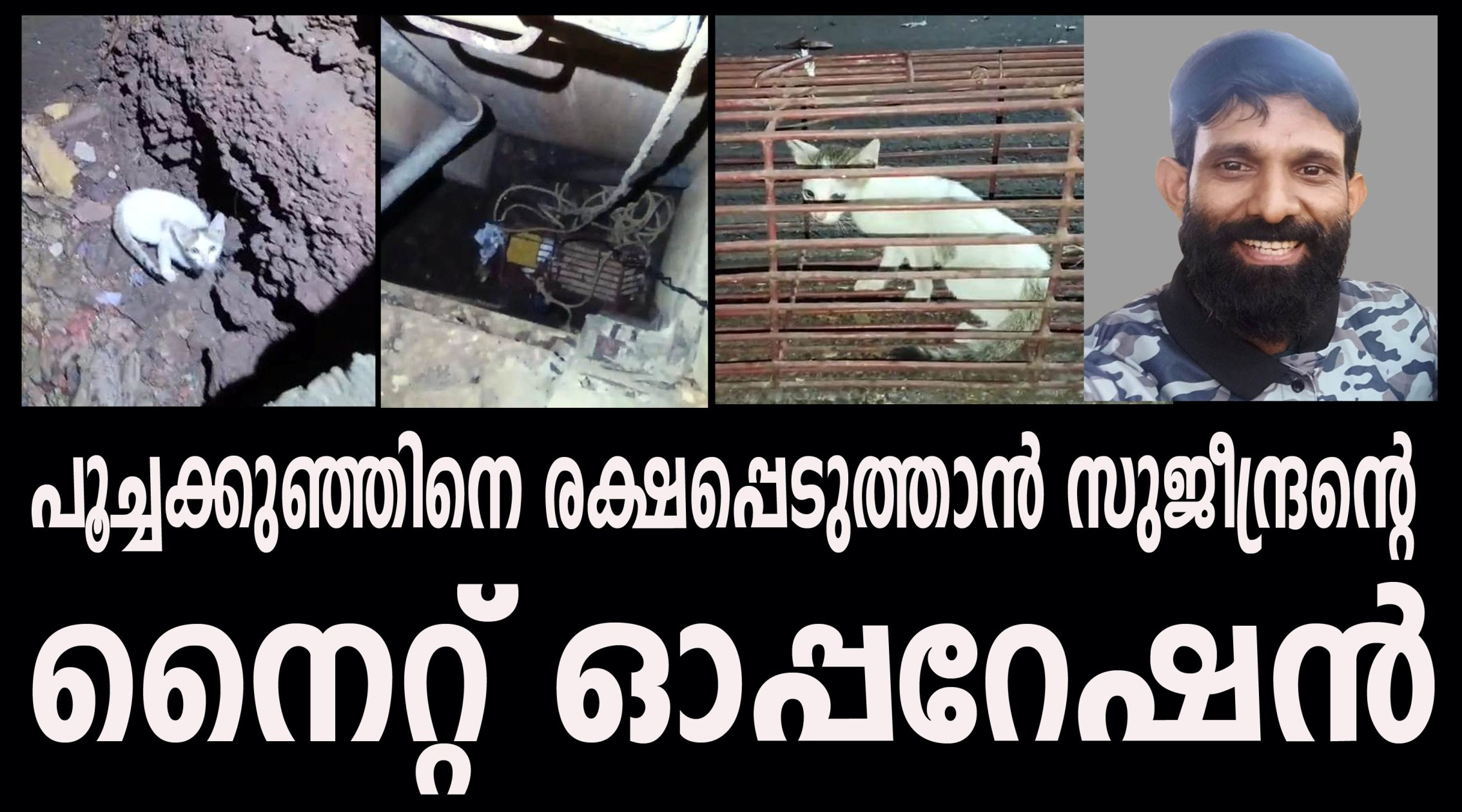 മെഡിക്കല് കോളേജ് അഡ്മിനിസ്ട്രേറ്റിവ് ബ്ലോക്കിനോട് ചേര്ന്ന് പ്രവര്ത്തിക്കുന്ന കേരള ബാങ്കിന്റെ പിന്ഭാഗത്തെ ചുമരിനോട് ചേര്ന്ന ഇരുപതടിയിലേറെ താഴ്ച്ചയുള്ള കുഴിയിലാണ് പൂച്ചക്കുട്ടി അകപ്പെട്ടത്.