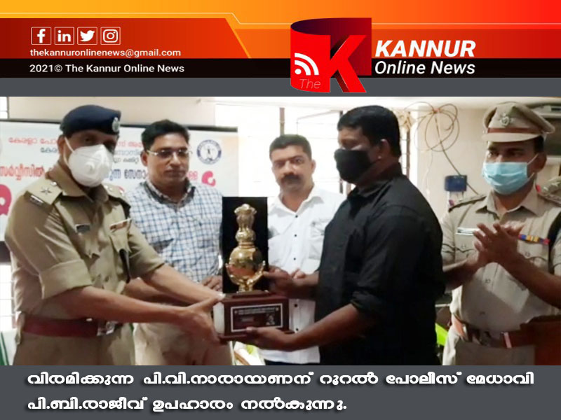 പയ്യന്നൂര്‍: സര്‍വീസില്‍ നിന്ന് വിരമിക്കുന്ന സബ് ഇന്‍സ്‌പെക്ടര്‍ പി.വി.നാരായണന് കേരളാ പോലീസ് ഓഫീസേഴ്‌സ് അസോസിയേഷന്‍, കേരളാ പോലീസ് അസോസിയേഷന്‍ എന്നിവയുടെ സംയുക്താഭിമുഖ്യത്തില്‍ യാത്രയയപ്പ് നല്‍കി.