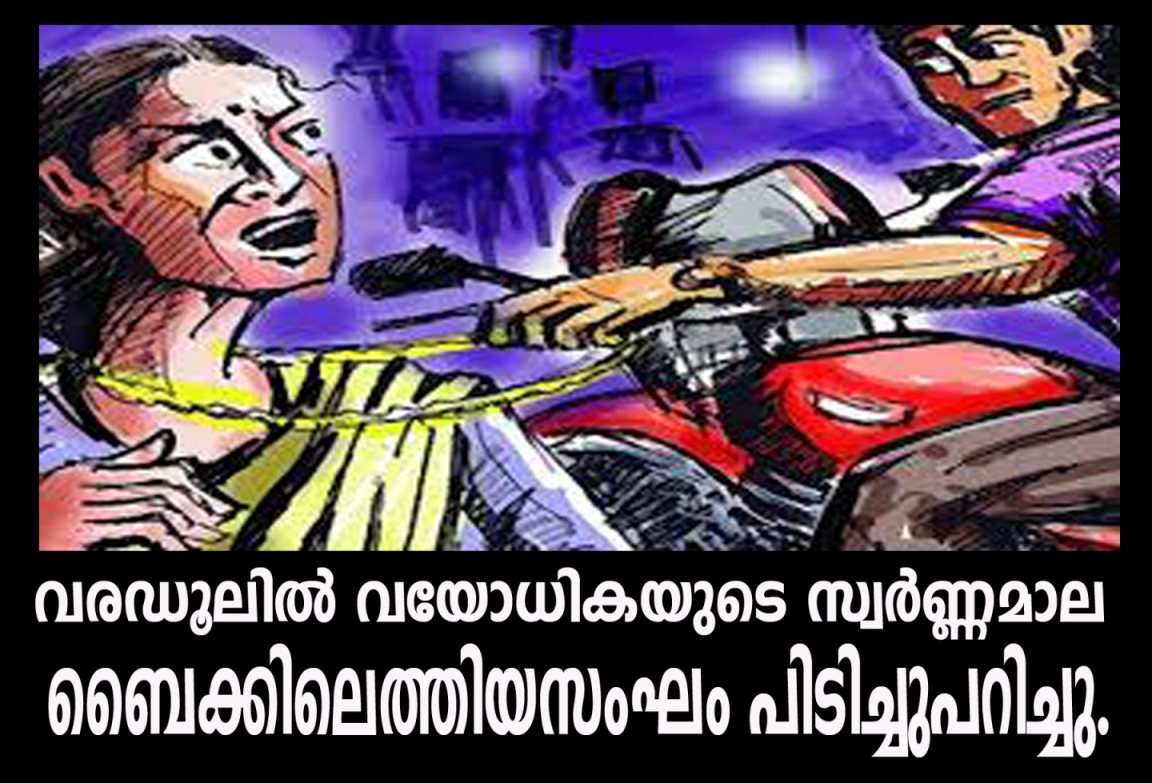 വരഡൂലില് വയോധികയുടെ സ്വര്ണ്ണമാല ബൈക്കിലെത്തിയ സംഘം പിടിച്ചുപറിച്ചു.