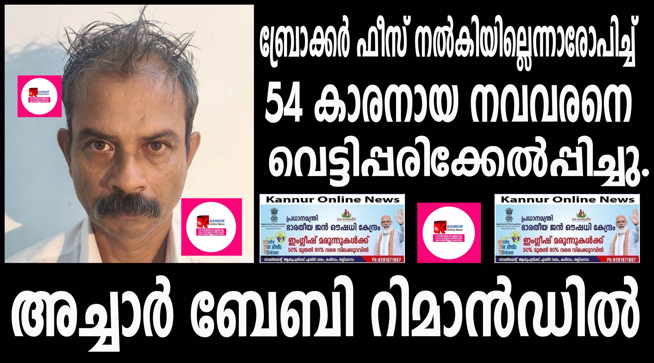 ബ്രോക്കര്‍ ഫീസ് നല്‍കിയില്ലെന്നാരോപിച്ച് 54 കാരനായ നവവരനെ വെട്ടിപ്പരിക്കേല്‍പ്പിച്ചു, പ്രതി റിമാന്‍ഡില്‍