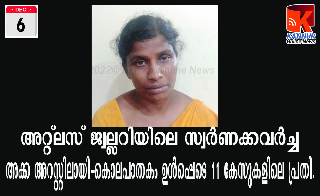 ജ്വല്ലറി കവര്‍ച്ച സംഘത്തിലെ മൂന്നാമത്തെ സ്ത്രീയും അറസ്റ്റില്‍-കൊലപാതകം ഉള്‍പ്പെടെ 11 കേസുകളിലെ പ്രതിയാണ് അറസ്റ്റിലായത്.