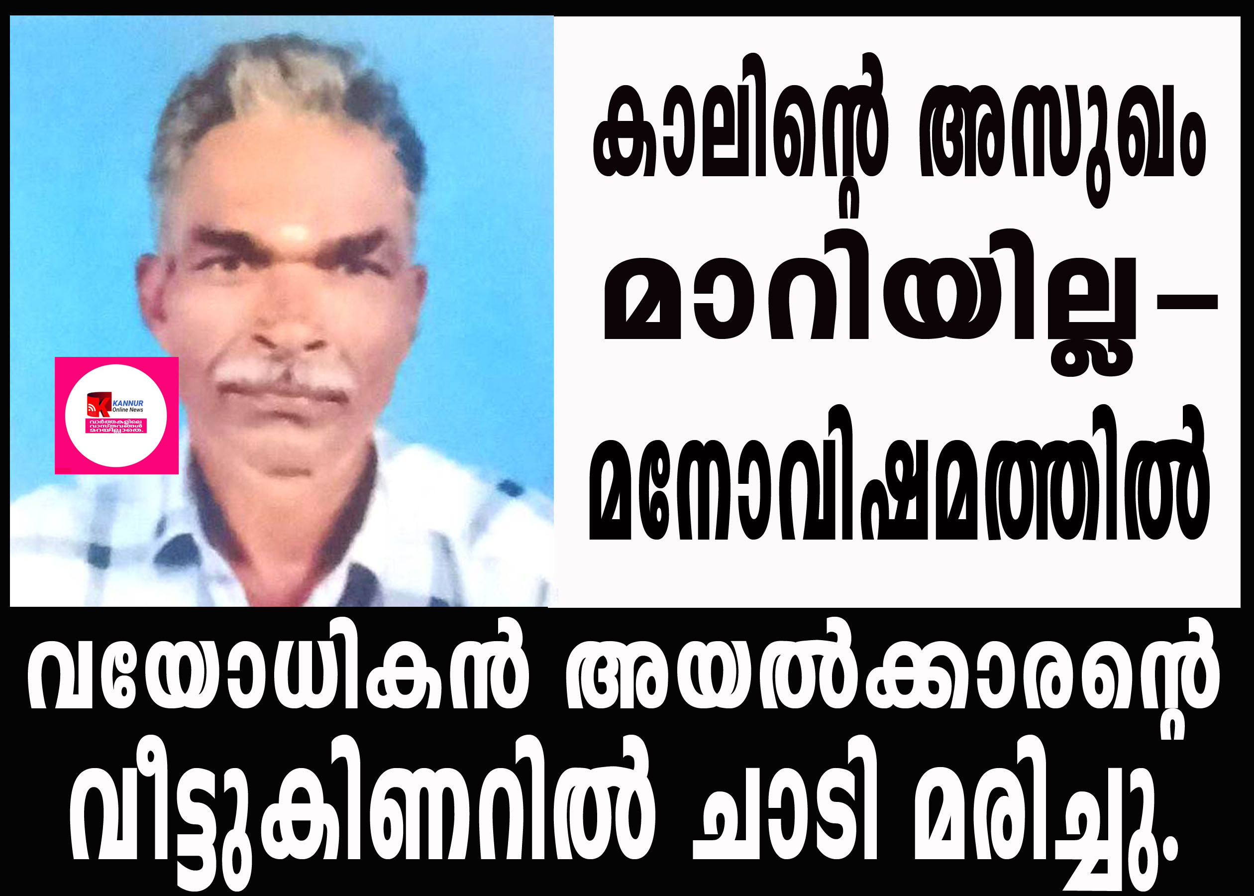 തളിപ്പറമ്പ്: കാലിന്റെ അസുഖം മാറാത്തതിലുള്ള മനോവിഷമത്തില് വയോധികന് അയല്ക്കാരന്റെ വീട്ടുകിണറില് ചാടി മരിച്ചു.