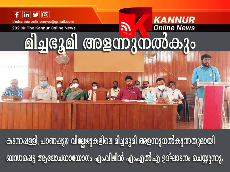 കടന്നപ്പള്ളി: കടന്നപ്പള്ളി, പാണപ്പുഴ വില്ലേജുകളിലെ മിച്ചഭൂമി എത്രയും പെട്ടെന്ന് ഗുണഭോക്താക്കള്ക്ക് അളന്ന് നല്കും.