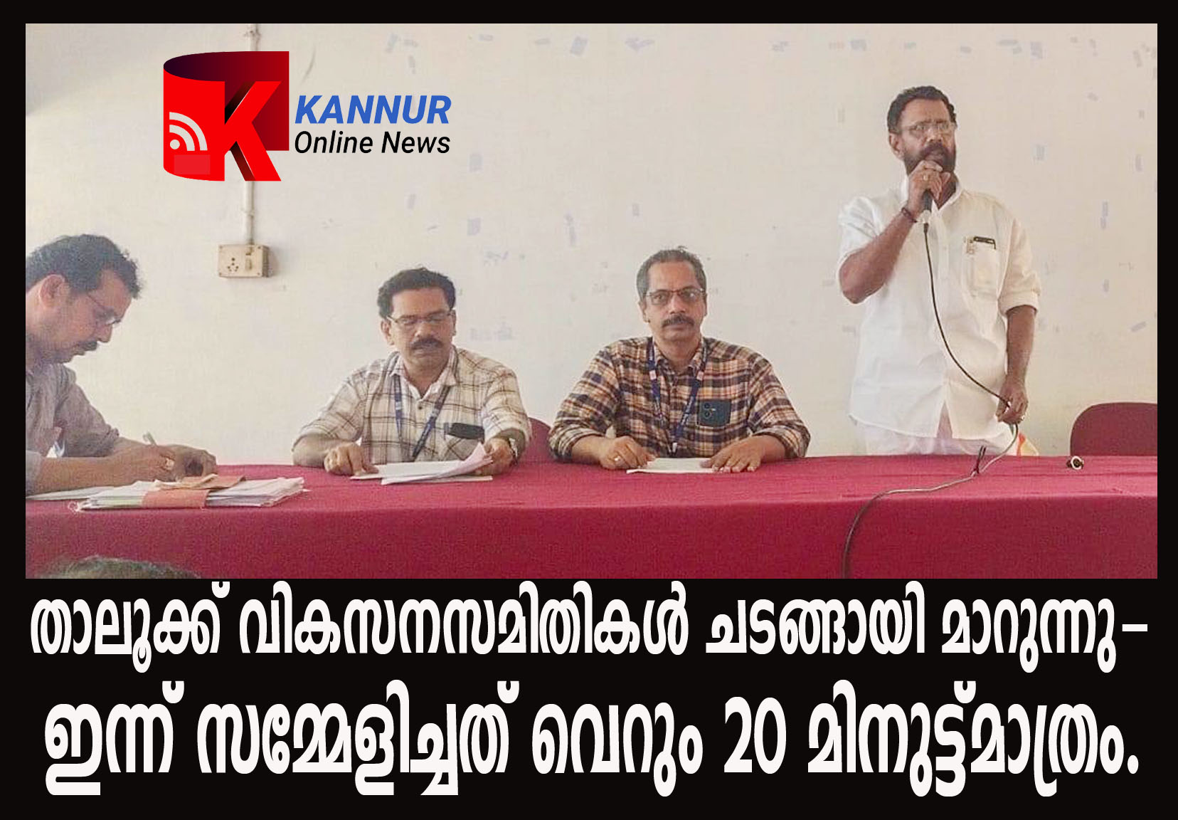 താലൂക്ക് വികസനസമിതികള് ചടങ്ങായി മാറുന്നു-ഇന്ന് സമ്മേളിച്ചത് വെറും 20 മിനുട്ട്മാത്രം.