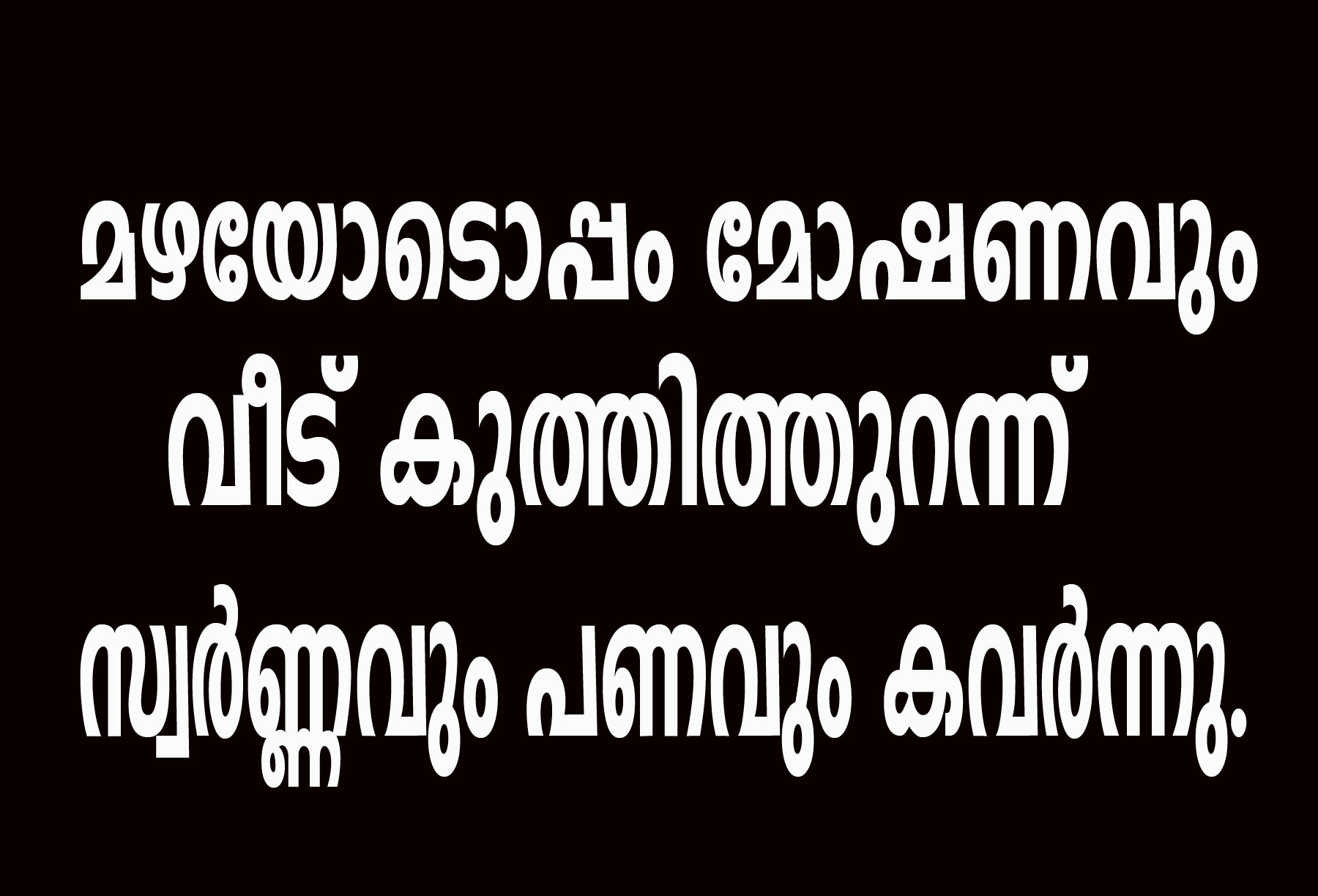മഴയോടൊപ്പം മോഷണവും വീട് കുത്തിത്തുറന്ന് സ്വര്‍ണ്ണവും പണവും കവര്‍ന്നു.