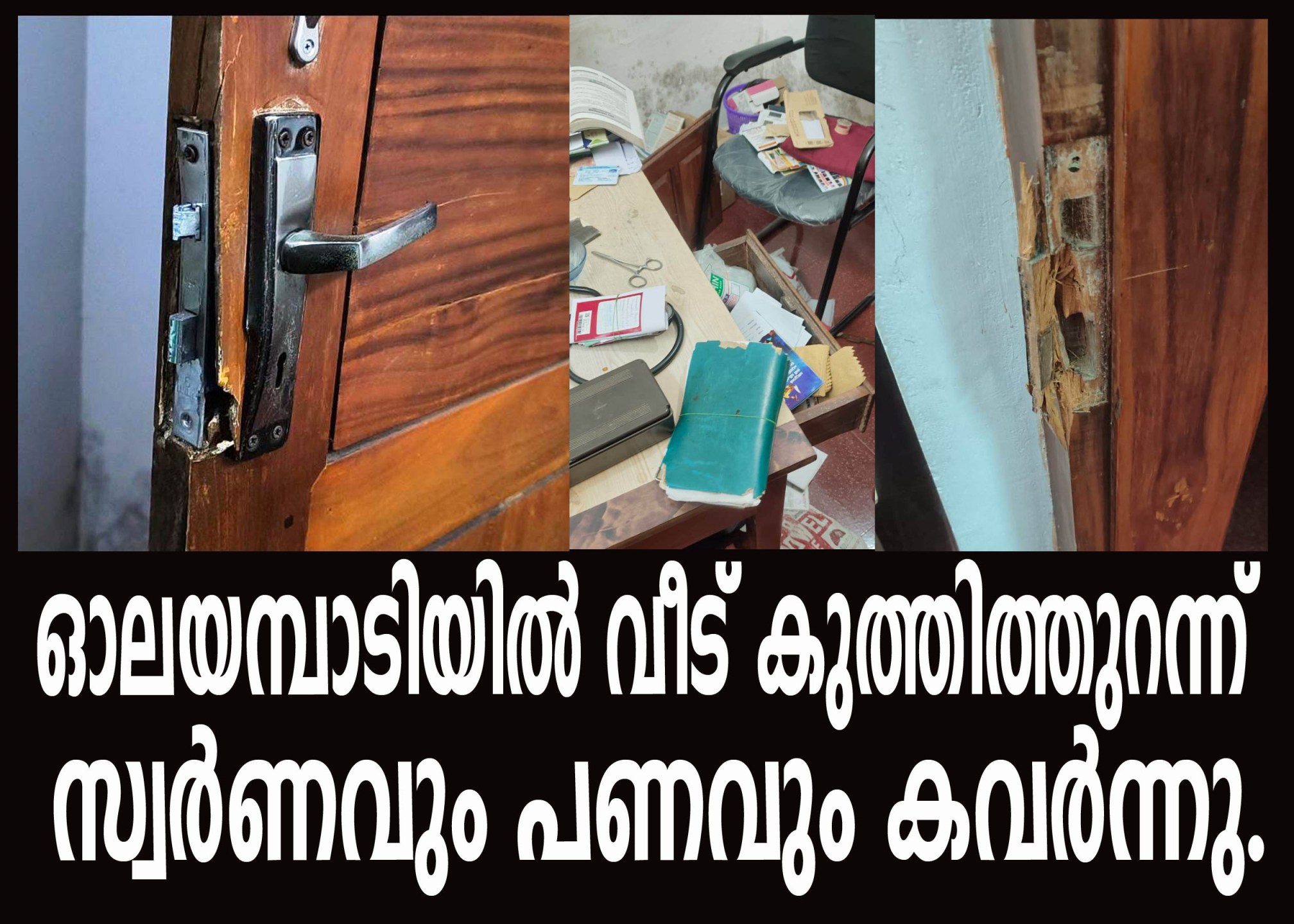 എല്ലാ മുറികളുടെയും വാതിലുകള് കുത്തിത്തുറന്നിട്ടുണ്ട്.