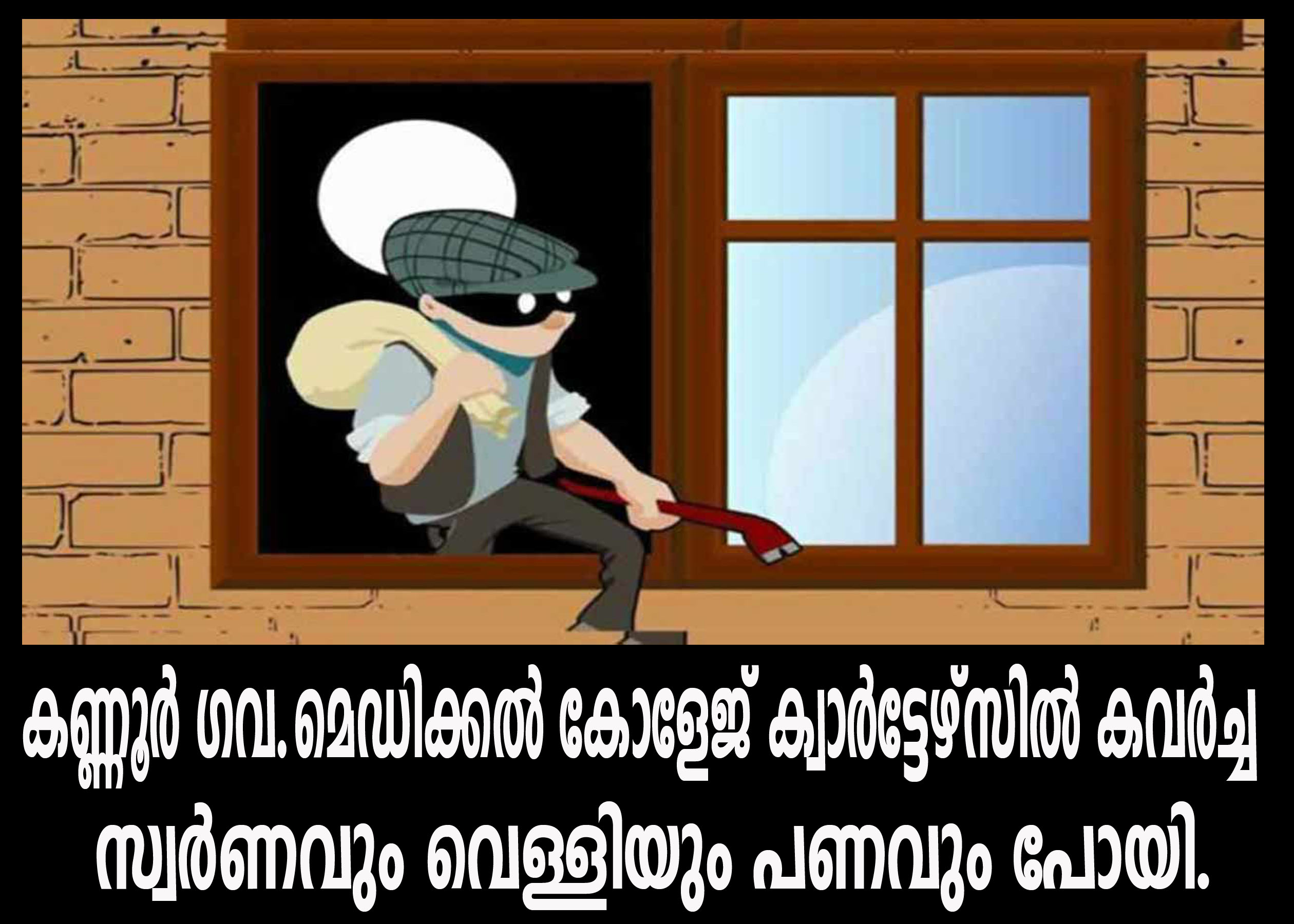 കണ്ണൂര് ഗവ.മെഡിക്കല് കോളേജ് ക്വാര്ട്ടേഴ്സില് കവര്ച്ച, സ്വര്ണവും വെള്ളിയും മോഷണം പോയി.