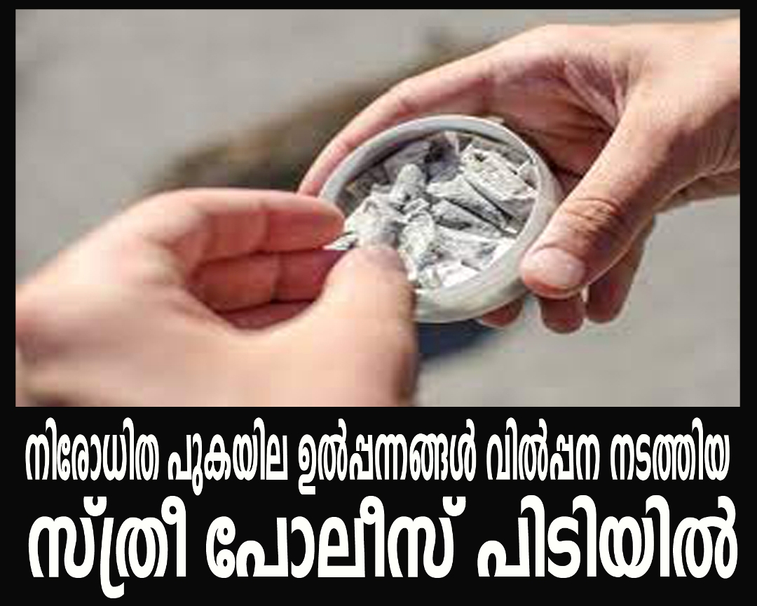 നിരോധിത പുകയില ഉല്പ്പന്നങ്ങള് വില്പ്പന നടത്തിയ സ്ത്രീ പോലീസ് പിടിയില്.