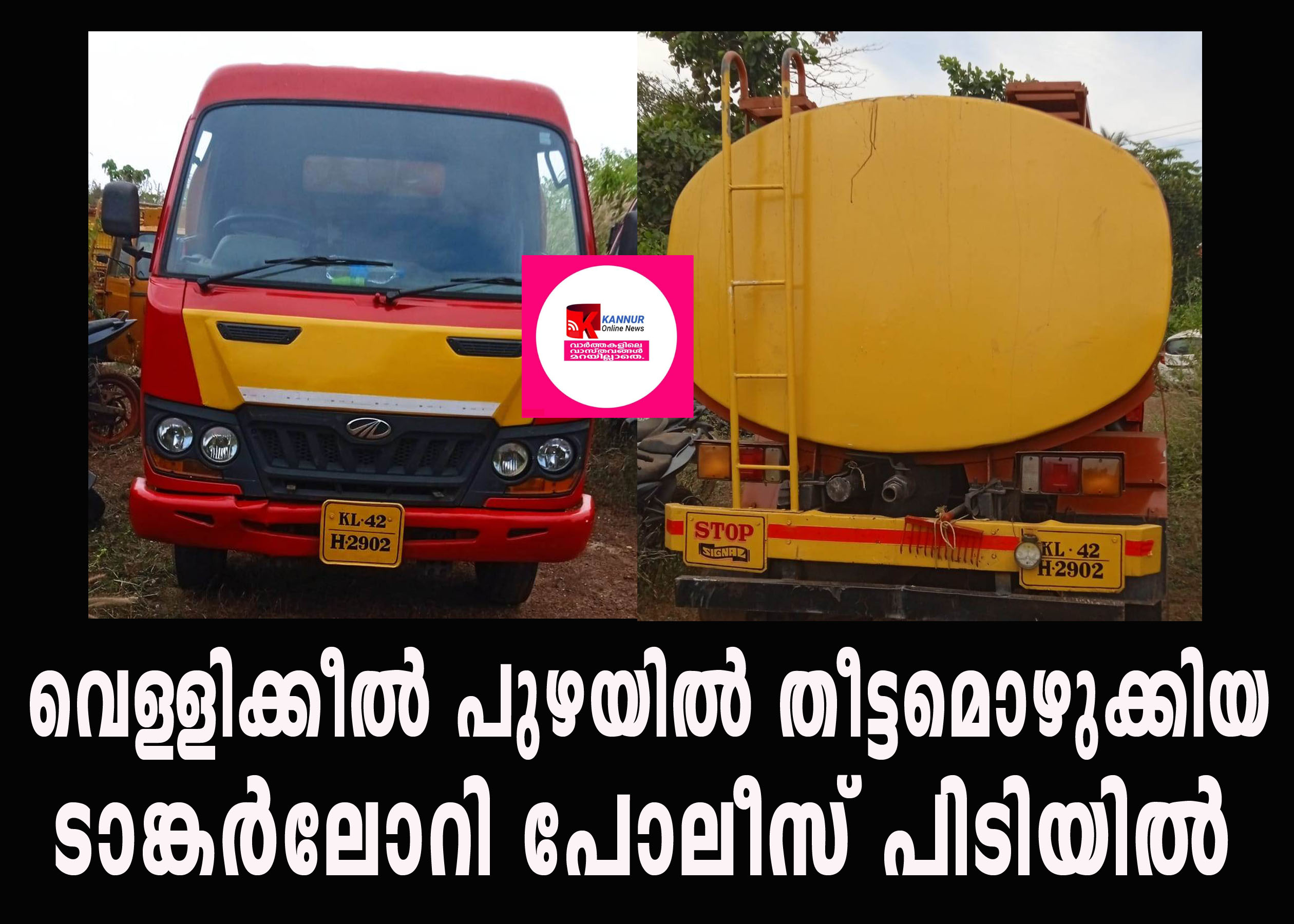 ഇന്ന് പുലര്‍ച്ചെ 3.30 ന് രാത്രികാല പട്രോളിങ്ങിനിടെ വെള്ളിക്കീലില്‍ പൂട്ടിയിട്ട പാര്‍ക്കവ്യു ഹോട്ടലിന്റെ പടിഞ്ഞാറുഭാഗം റോഡരികില്‍ കെ.എല്‍-42 എച്ച് 2902 ടാങ്കര്‍ലോറി നിര്‍ത്തിയിട്ടതായി കണ്ട്