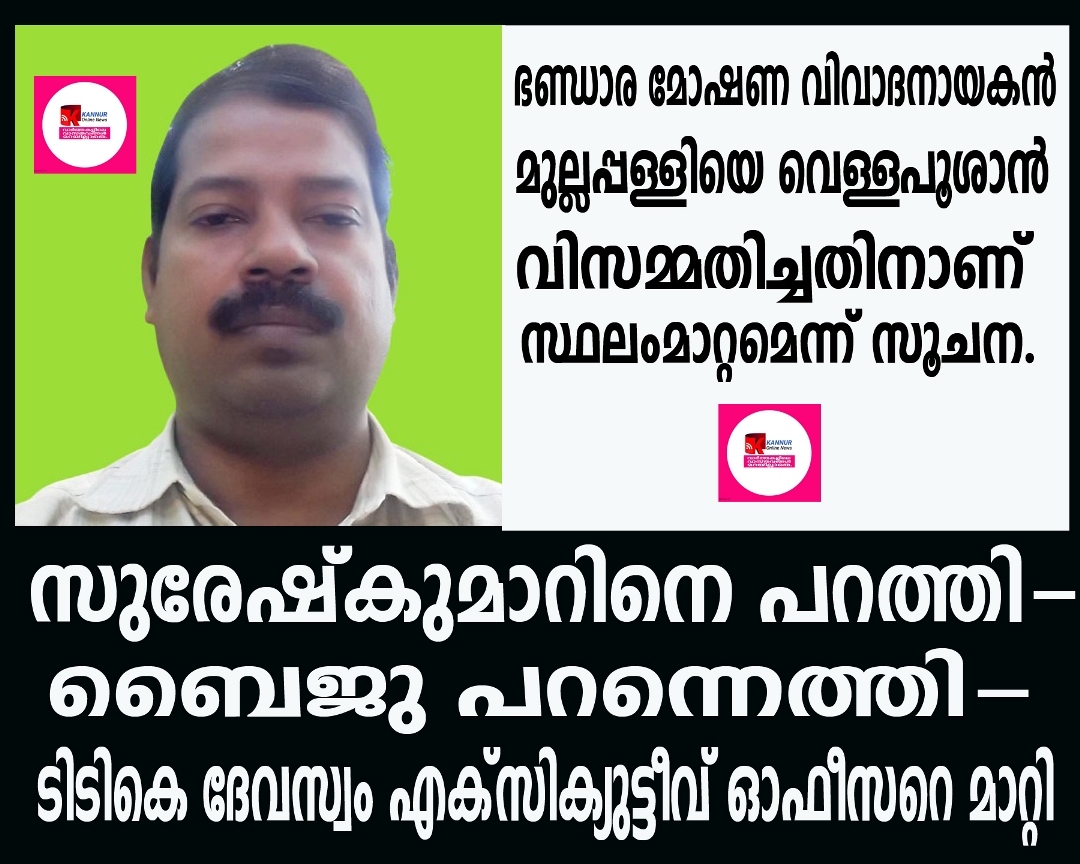 സുരേഷ്കുമാറിനെ പറത്തി-ബൈജു പറന്നെത്തി- ഇന്ന് രാവിലെ ചുമതലയേല്ക്കും. ടിടികെ ദേവസ്വം എക്സിക്യുട്ടീവ് ഓഫീസറെ മാറ്റി