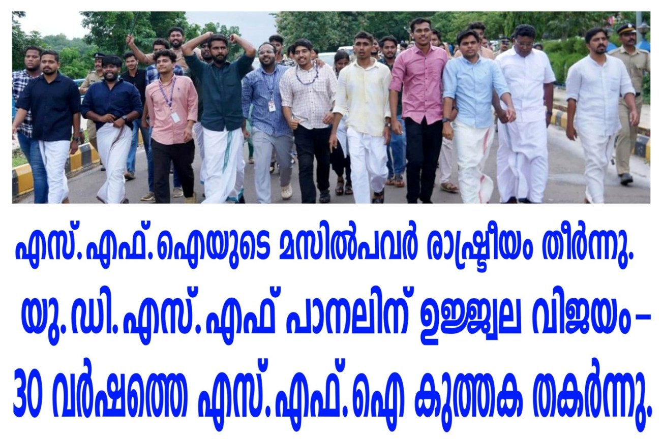 യു.ഡി.എസ്.എഫ് പാനലിന് ഉജ്ജ്വല വിജയം-30 വര്ഷത്തെ എസ്.എഫ്.ഐ കുത്തക തകര്ന്നു.