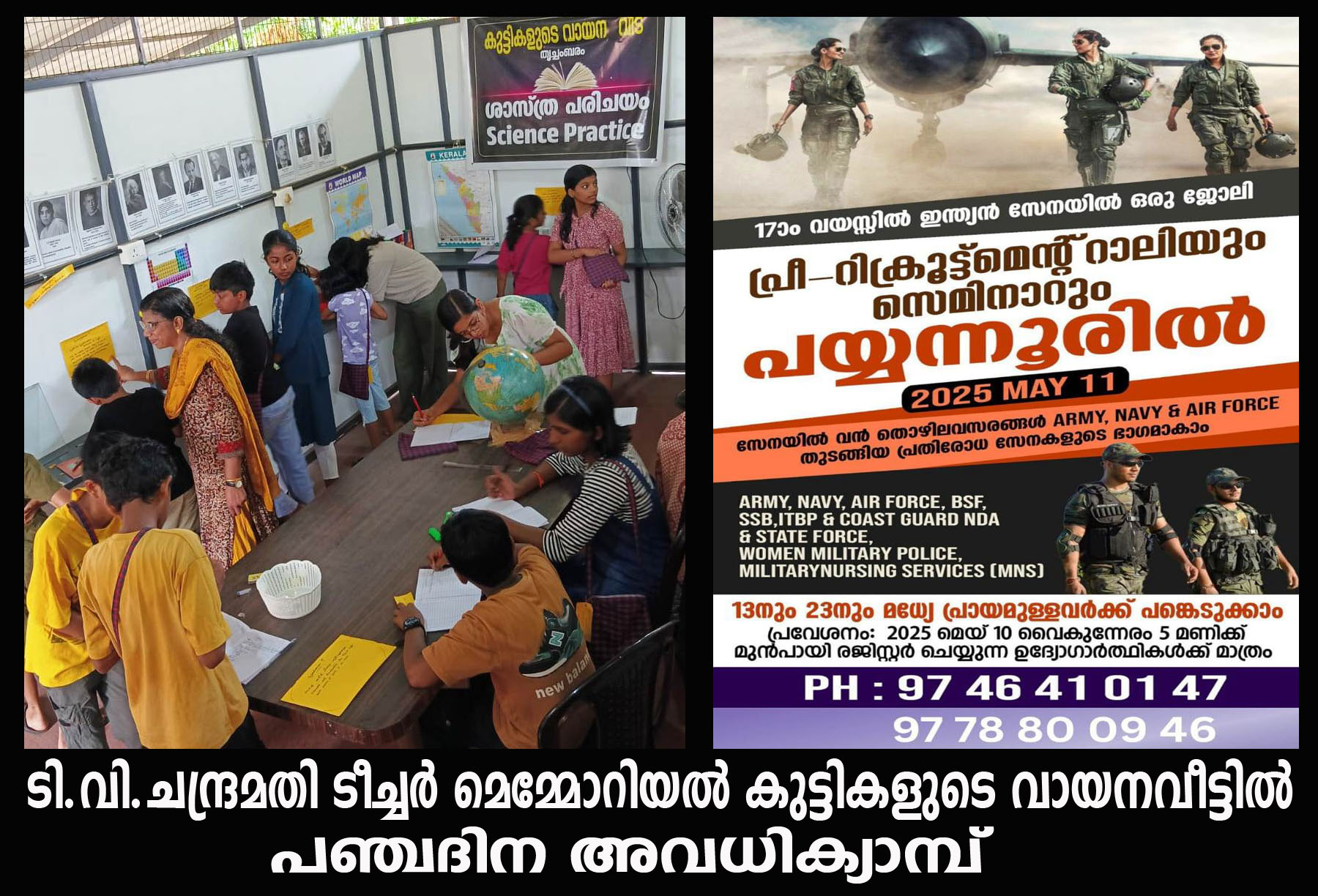 ടി.വി ചന്ദ്രമതി ടീച്ചര് മെമ്മോറിയല് കുട്ടികളുടെ വായനവീട്ടില് പഞ്ചദിന അവധിക്യാമ്പ്